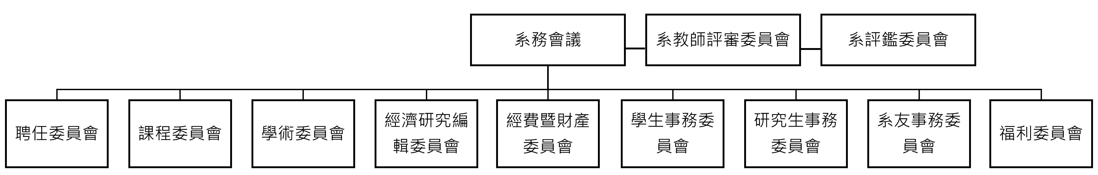 本系行政管理機制之組織架構共分兩階層,第一階層為系務會議、系教師評審委員會、系評鑑委員會。系務會議下為第二階層,包含聘任委員會、課程委員會、學生事務委員會、研究生事務委員會、學術委員會、系友事務暨福利委員會、網站資訊與數位管理委員會、經濟研究編輯委員會。